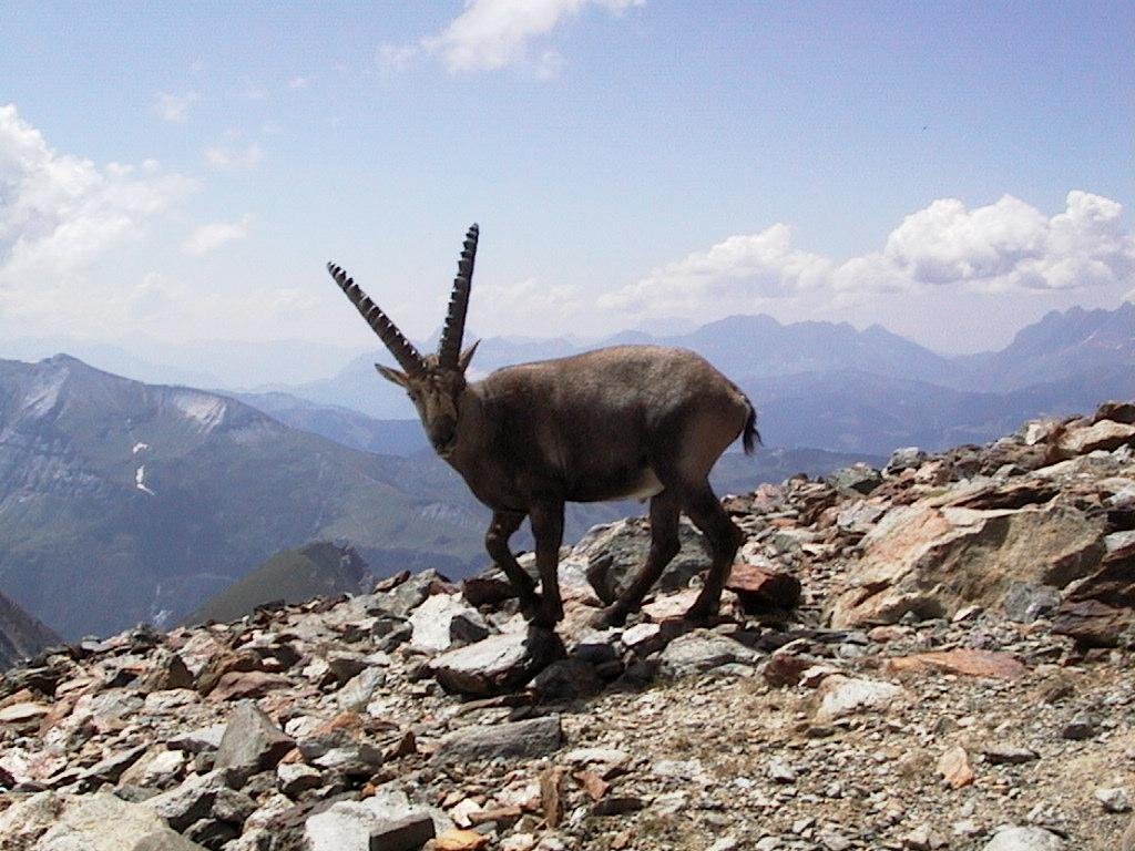 Some of the mountain goats (or what is this animal called?) had big handsome horns. Apparently they were used to tourists, we could walk to only a few meters away and they weren't disturbed. |