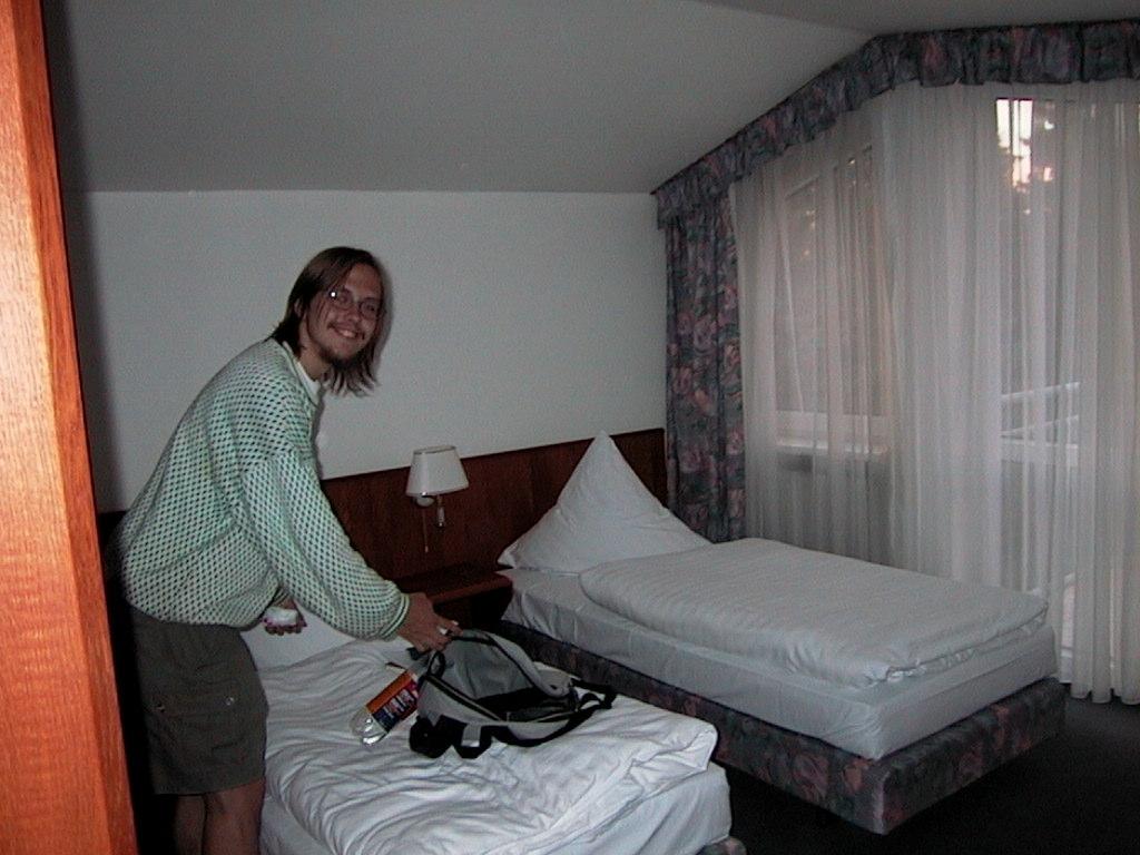 In the evening we were already at the hotel, I stayed with Atte. It was a pleasant surprise, large, comfortable rooms with TV for a low price. I payed 650 FIM for the four nights. |