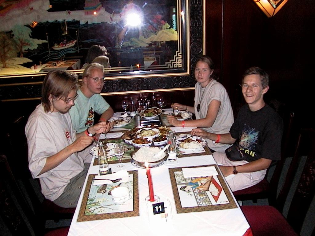 In the evening we had dinner at a nice Chinese restaurant. From the left: Atte, Jani, Heidi and me. |