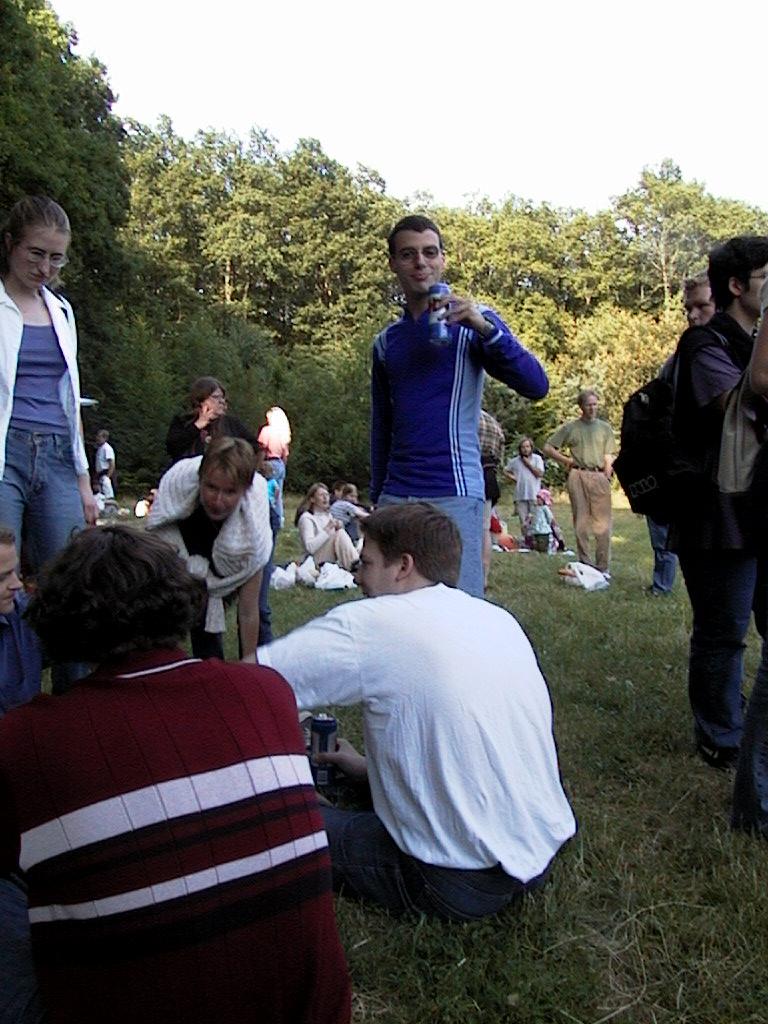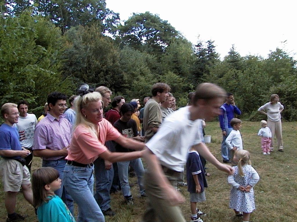 The Nordisk Club in Geneva, Switzerland organized a Midsummer party 26.6.1999. The location was Terrain St Jacob, Meyrin - a grass field with barbecue facilities near the French border. The party was a mix of traditions in the Scandinavian countries, with at least some Finnish, Swedish and Danish elements. In addition to the Scandinavians living in the area, the Summer Students at CERN were invited to join the party. I would guess that about 100-200 people showed up. (Click on the pictures to enlarge them) Update on 30.6.1999: Most of the Summer Students' names added to the descriptions, thanks to Jan. | |