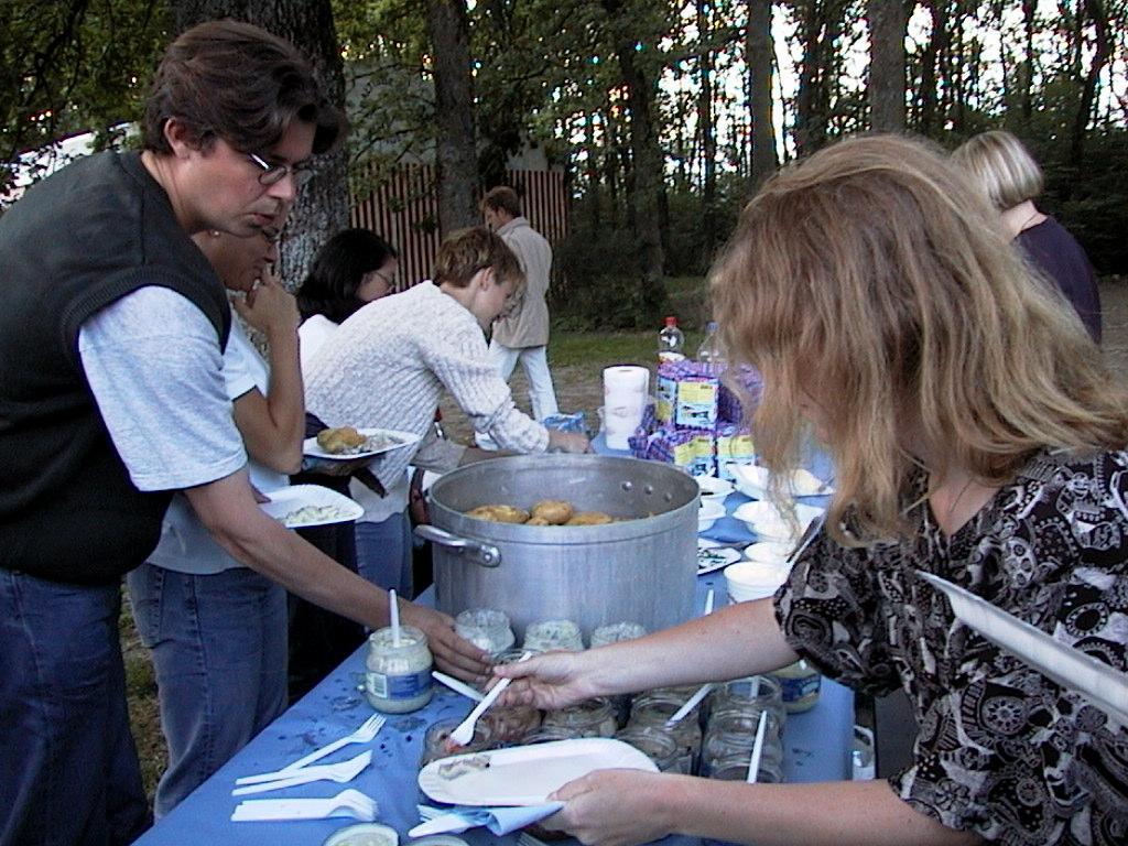 Call for dinner! Ari Kiiskinen was the main organizer, notice the Finnish flag on the cap. |