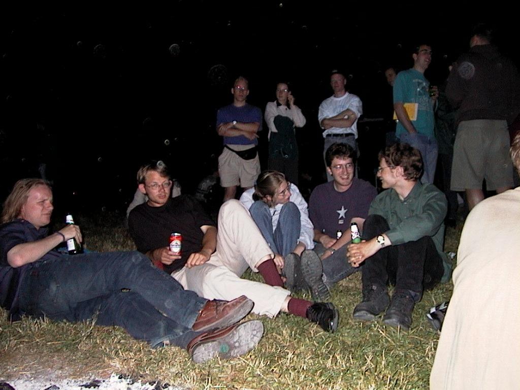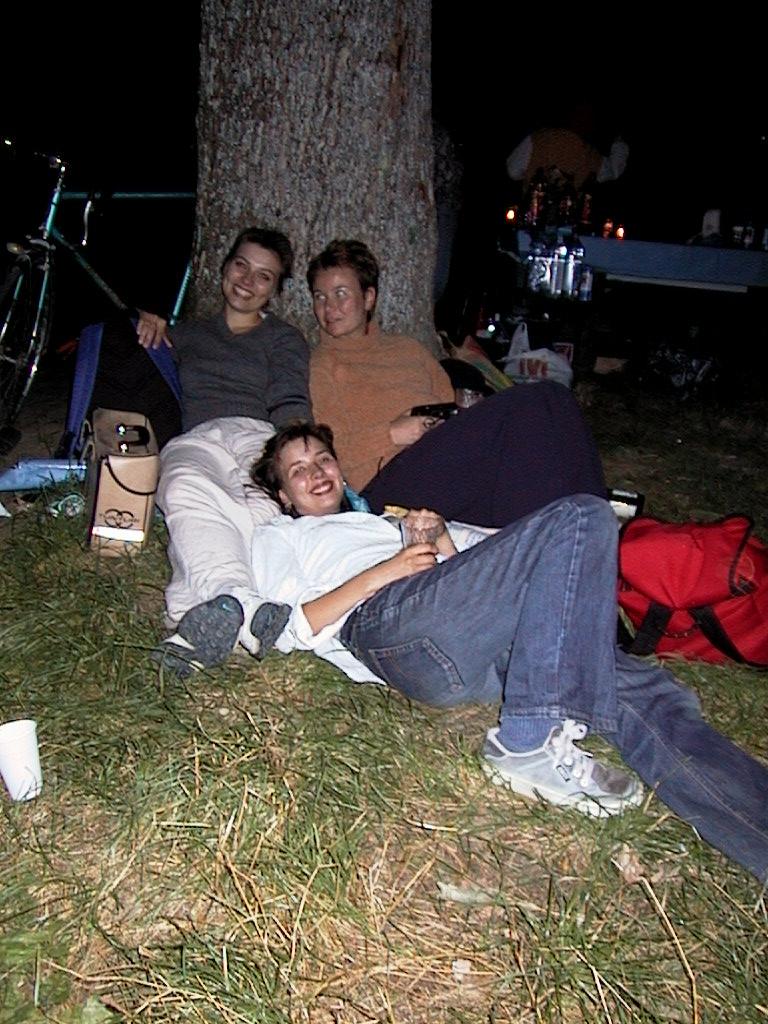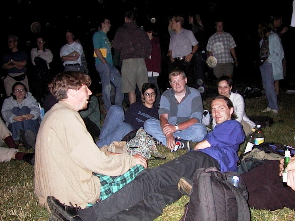 In the evening, people gathered into small groups for chatting: Jan in the front, Dafni and Andy in the middle and Albin lying on the grass. |