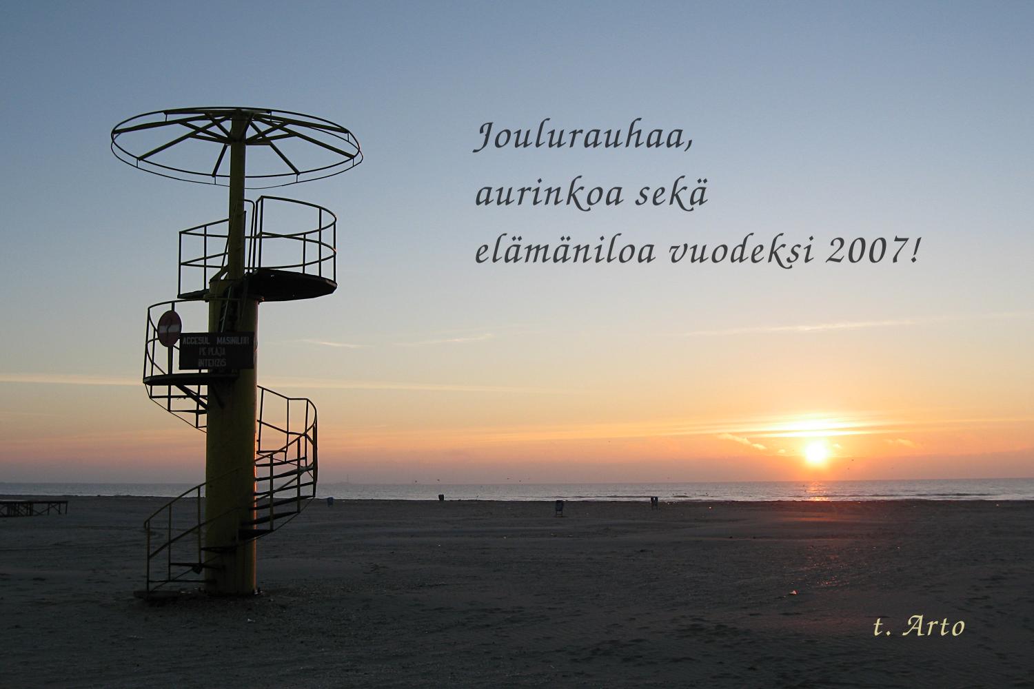 Aurinko tervehtii autiota Mustanmeren rantaa.