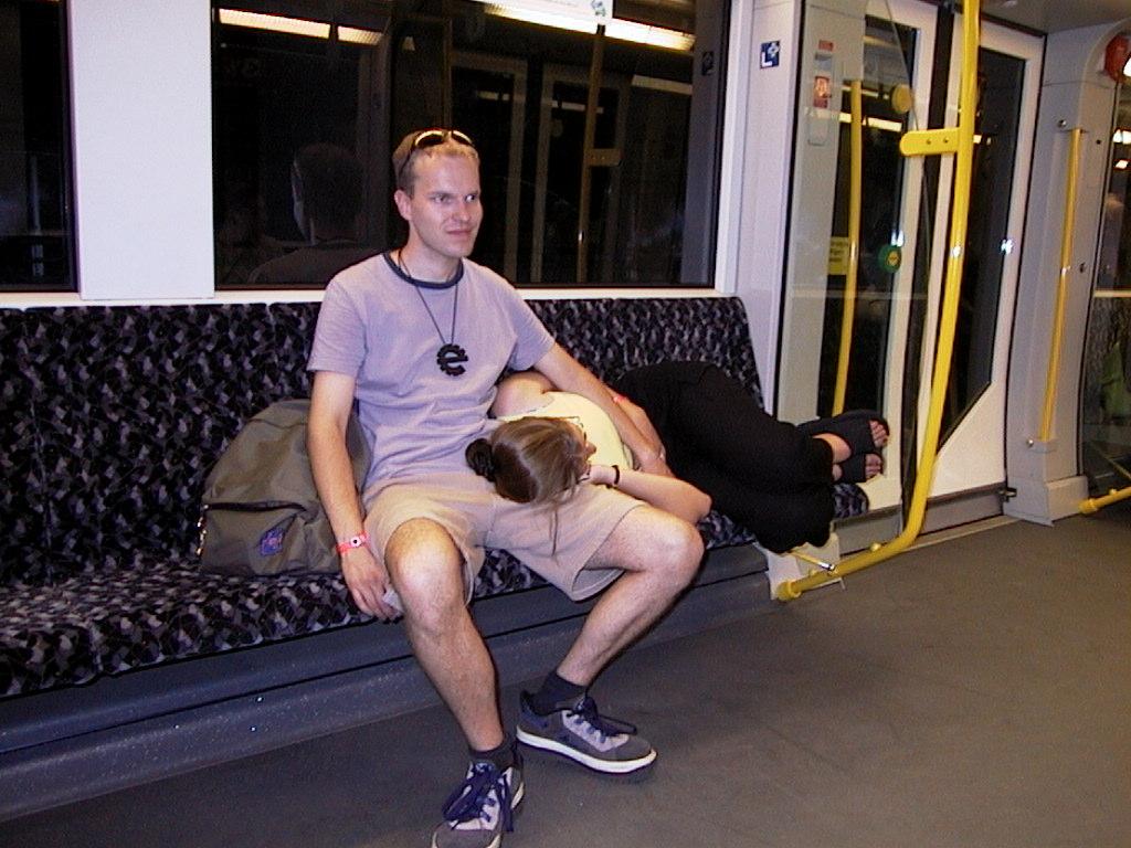 This time our choice was OstGut, a strange place in the East Berlin. I guess it had been used as some sort of a train storage hall and/or a repair shop, because there were railway tracks but it didn't look like a station. The place was mostly dark, with large pipes going under the ceiling and along concrete walls. The syntetic smoke on the main dance floor was blown around by a huge old fan (about 1,5 m in diameter), with the right amount of colored lights and strobos to occasionally illuminate the place. Wonderful spooky look, 10 points to the designer. The look of the place was enhanced by the people. Of course on the Love Parade weekend the average pick didn't differ much from that you would expect to see in a party, but several were wearing leather or rubber and different metal gadgets. Many of the crew selling drinks had big tattoos over their bodies. I was directly asked two times if I was gay. The star of the night in the DJ lineup was Luke Slater, Richie Hawtin should have been there too, but unfortunately had cancelled. The music was a bit too monotonic to my taste, but ok. Jani and Atte seemed to like it a lot. Unfortunately the acoustics were terrible, especially the bass end turned into unrecognizable noise already some 20 meters away from the speakers. In the morning we caught the train back to Geneva, and had plenty of time to sleep. Was it worth it?The Love Parade is a whole weekend long phenomena. The range of parties was just outstanding with certainly something for everyone - well, for everyone even slightly interested in techno. The parade itself was too crowded during daytime, but the night was fantastic, as well as the other parties around it. It was definitely worth coming. Not a surprise, but still one of the disappointing things for me was that the drugs were much more visible than in Finland. I was asked for stuff once and offered two times - no luck in either case. Aren't people able to have fun without pumping all kinds of chemicals in? I must admit, though, that I didn't see a single accident of overdose, and the users didn't do any harm to others - contrary to some people being drunk from too much alcohol. As a whole, it was a great trip - see you there next year? | |