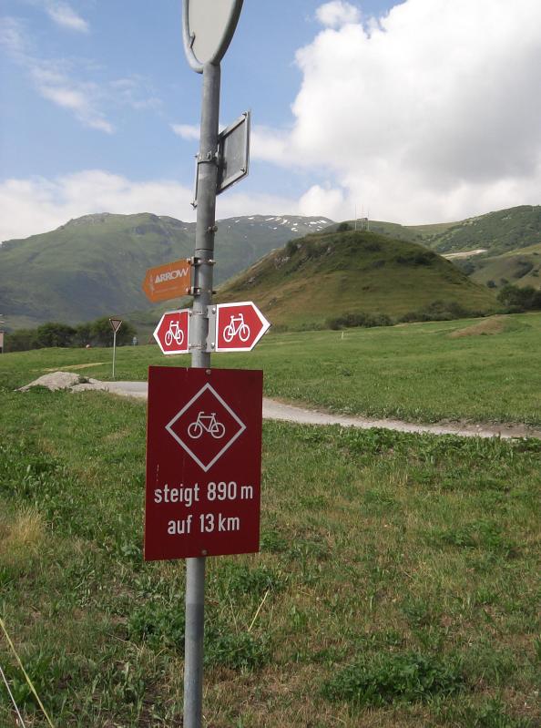![]() Photo at the sign before continuing uphill. 800x600 (55 kB) 1600x1200 (163 kB) |