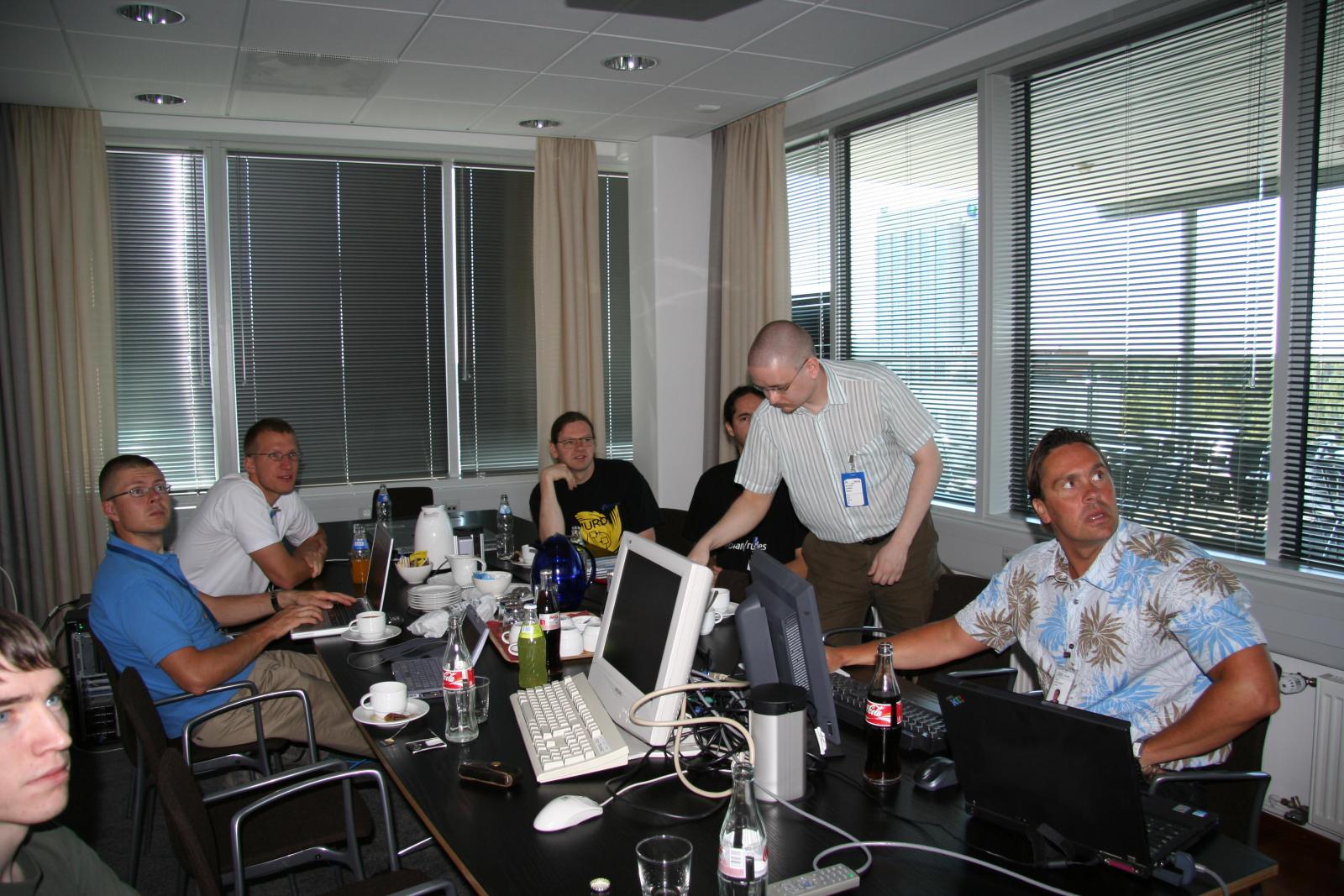Most participants stayed in one of the dorms of Helsinki University of Technology - crammed full enough that most people spent a lot of time outdoors. Surprisingly even the weather was great practically all the time! Nearby another building was dedicated as the hacklab, and lectures were held in computer science department. A day trip was organized to the fortress island Suomenlinna and Thursday evening was labeled as the formal dinner - not too formal of course. :-)