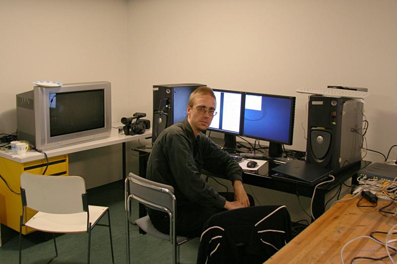 ![]() Herman showing the nice two screen setup in the video room 800x533 (40 kB) 1600x1067 (114 kB) |