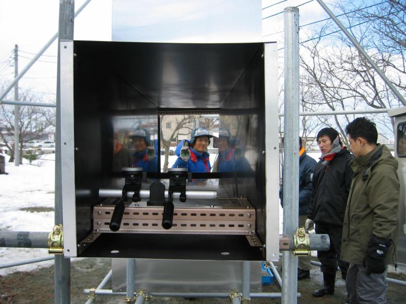 ![]() Camera mounts in the observation tunnel, professor Muramoto (村本先生)at the other end. 800x600 (71 kB) 1600x1200 (215 kB) |