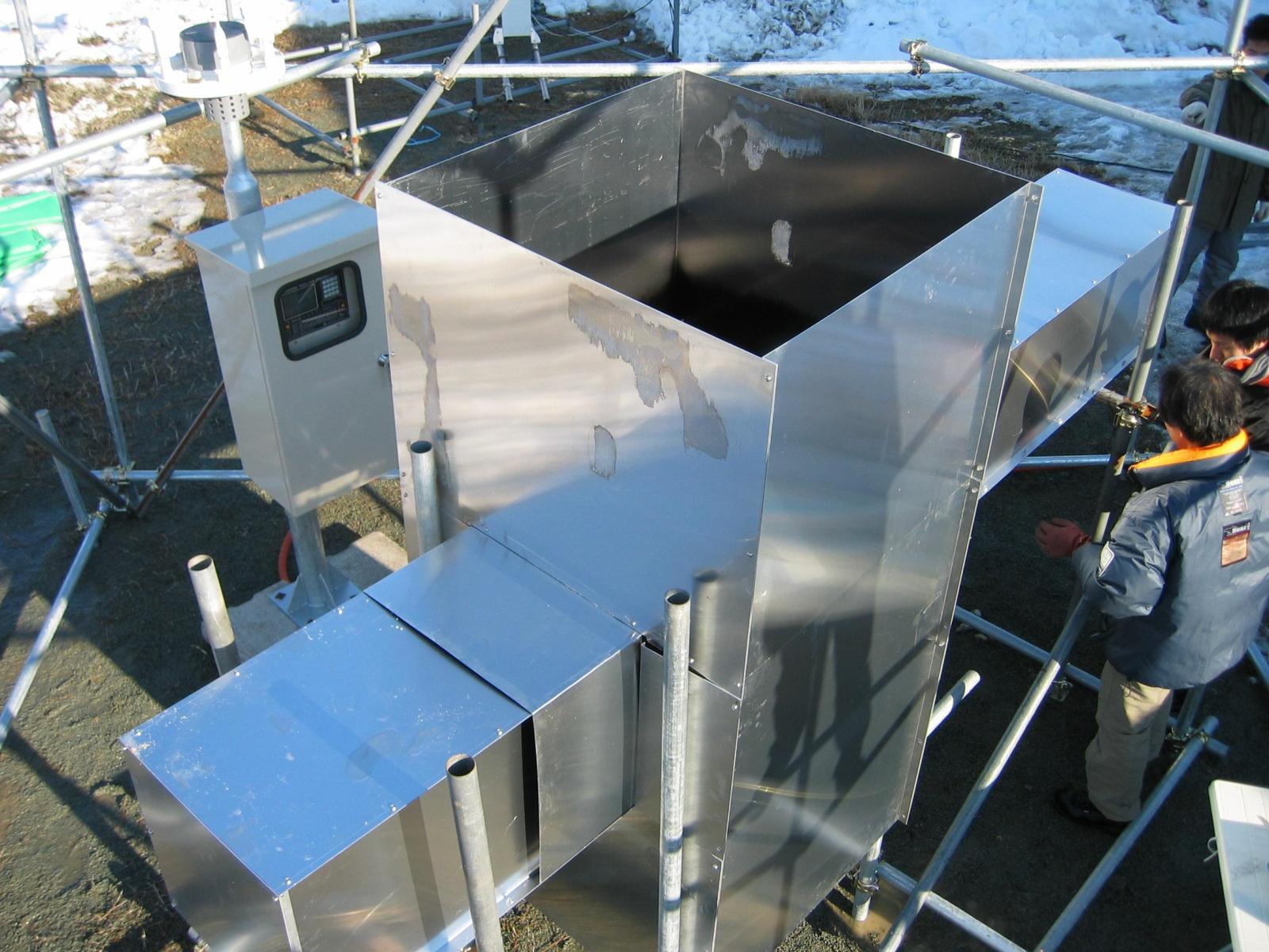 ![]() Tower from above, snow goes in the pipe and ends up on video in a narrow illuminated gap inside. 800x600 (72 kB) 1600x1200 (224 kB) |