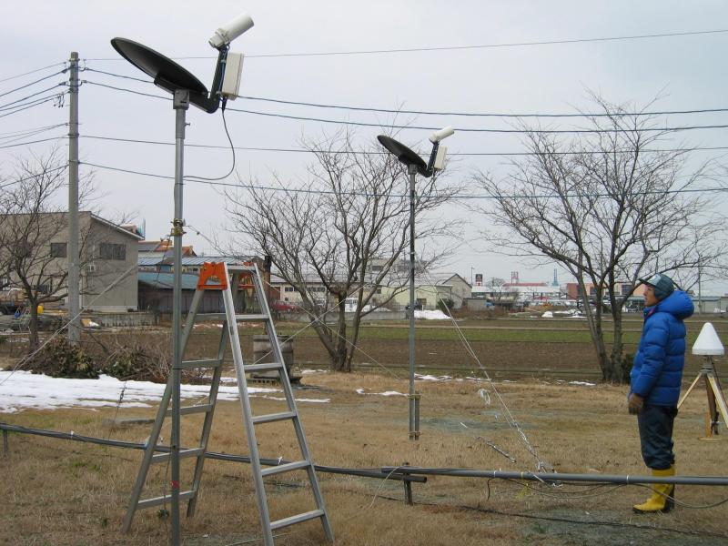 ![]() Kanda (神田さん)setting up the wind breaker net. 600x800 (81 kB) 1200x1600 (270 kB) |