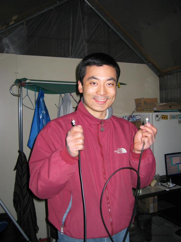 ![]() Fujii (藤井さん) happy at 5 am after figuring out the reason for some lost sondes: faulty cable. 600x800 (48 kB) 1200x1600 (150 kB) |