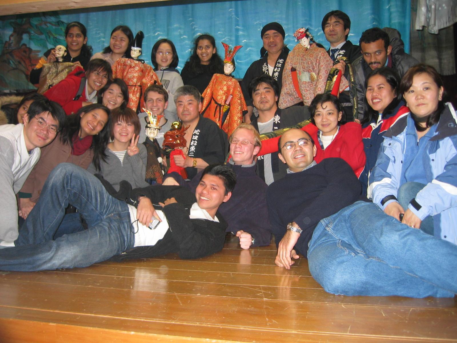 On the second weekend of February the International Student Center organized a ski trip to Hakusan Ichirino Onsen (白山一里野温泉) ski resort. Departure was Friday afternoon and in the evening we went to see Bunya Ningyou Joruri (文弥人形浄瑠璃), a traditional puppet play in Higashi-Futakuchi area, Oguchi village. Actually we saw only two first scenes of a play, the full length one would have been over four hours long. The songs were in original 300 year old language, which differs a great deal from current Japanese: even natives have trouble understanding it. Saturday was reserved for skiing, for quite a few people it was actually the first time on skis. The hotel had a small hot bath but unfortunately we didn't have time to go to the actual hot spring center. Hint: How about returning two hours later next year, to leave some time to relax there after skiing? But weather was perfect, skiing great, and of course good company around all the time. :-) |