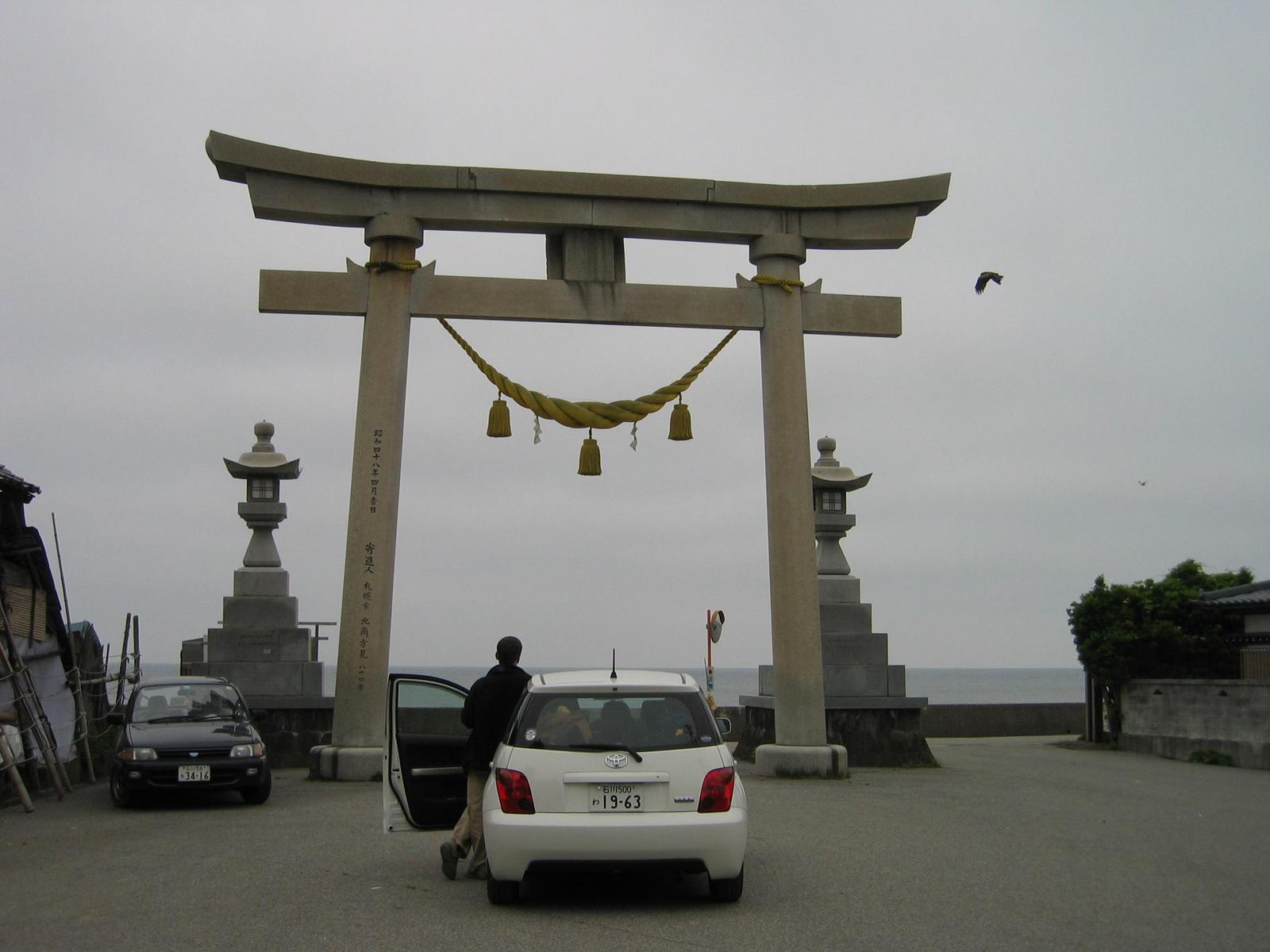 ![]() Two eagles were sitting on the torii, but fled before we had cameras ready. 800x600 (38 kB) 1600x1200 (123 kB) |