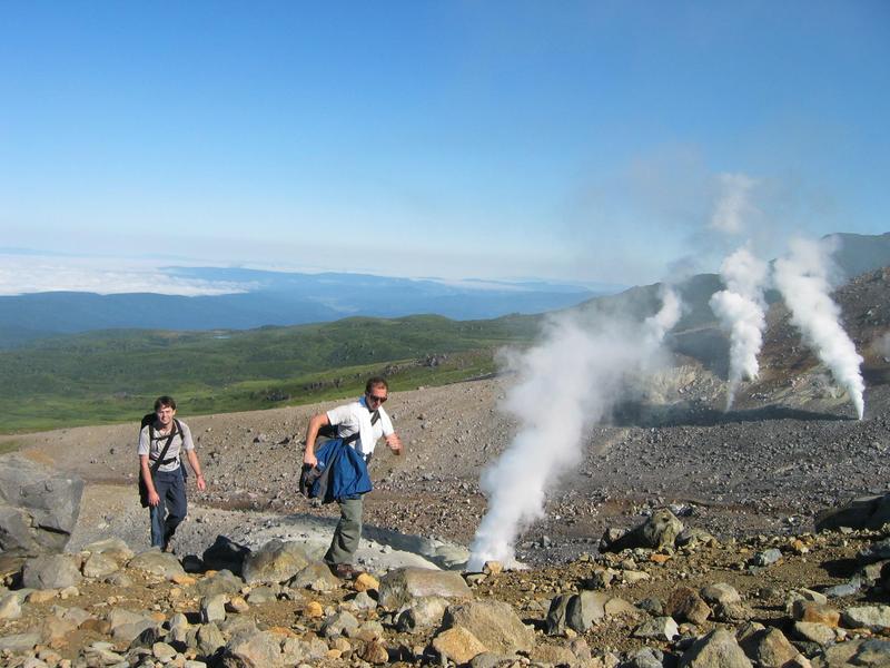 | Tuliperäiset vuoristoalueet olivat minulle uusi kokemus. Asahidake Daisetsuzanin kansallispuistossa Hokkaidolla päästeli höyryjä rinteen raoista. |