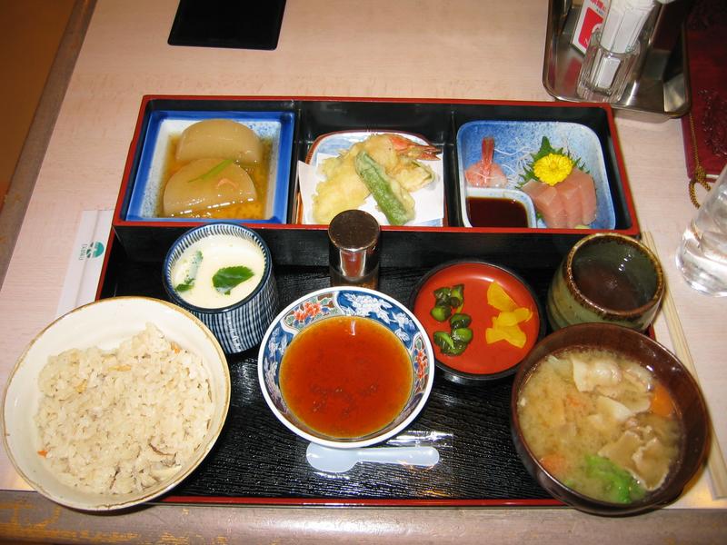 | Tyypillinen noin 1000 jenin ruoka-annos. |
