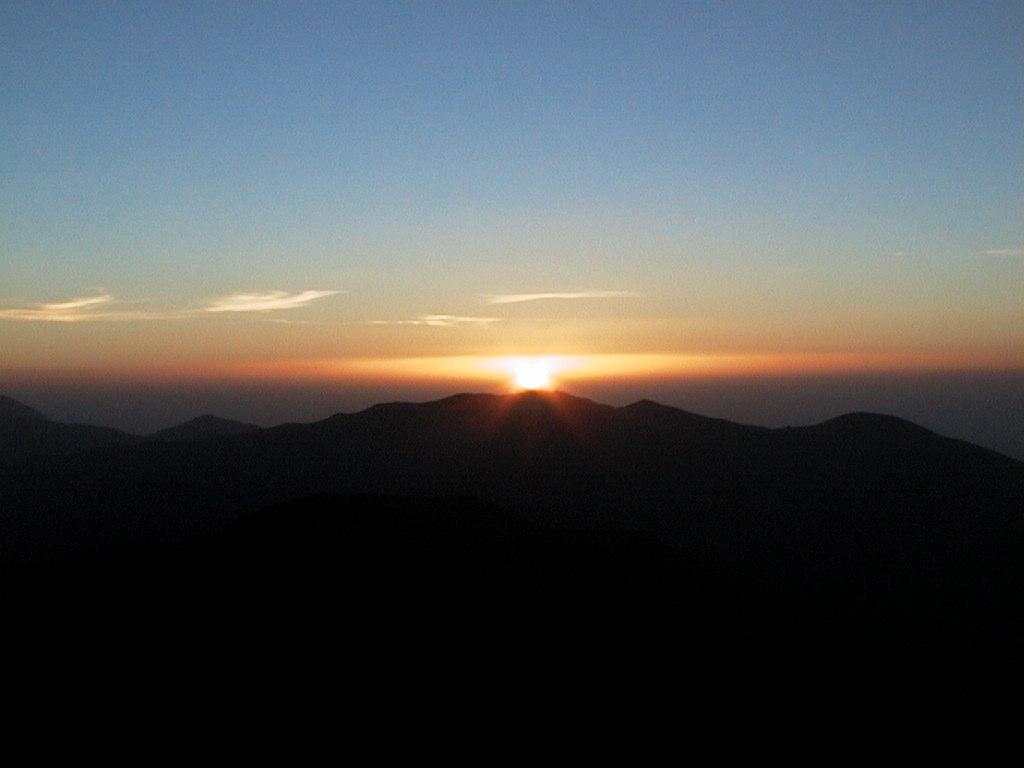 Il y avait sûrement plus de 100 personnes dans le refuge et les tentes mais nous deux étions les seuls suffisamment fous de monter pendant la nuit. Tout en profitant de la vue nous nous sommes assis et nous avons commencé de chauffer de l'eau. Le thé était prêt à 6.30 et nous avons eu du pain, du fromage et des biscuit pour le petit déjeuner.