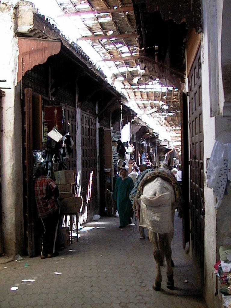 Vendredi matin nous avons vu encore une bonne example du système de transports publiques au Maroc. Nous avons démandé à l'hôtel comment on peut aller à Fes, une ville 50 vers l'est de Meknes. Le patron a dit qu'il y a des cars tout la journée et ils arrêtent devant l'hôtel à signal. Il avait raison, le car est venu dans 5 minutes et dans 45 minutes nous étions à Fes pour 10 DH par personne. Parfait.