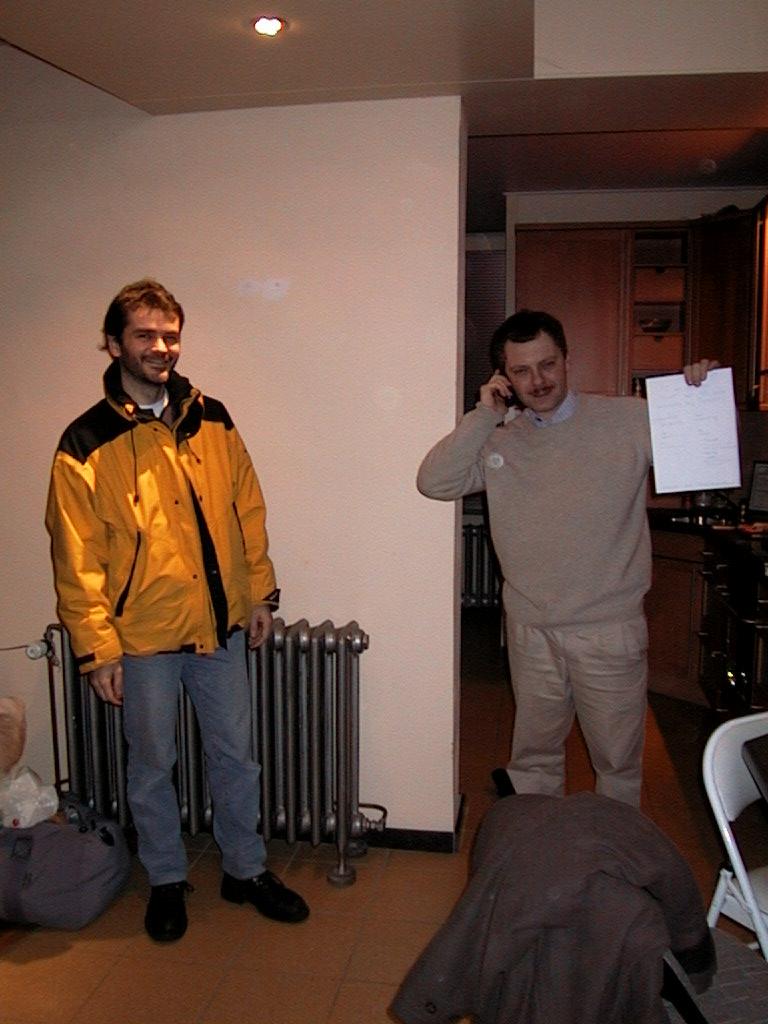 On Sunday morning Loic Dachary handed our host Peter Vandenabeele a diploma on the behalf of the "OSDEM community". Peter had generously arranged for about 20 people a place to sleep by offering to that purpose both his own apartment and the still empty new office premises of Mind.be, which was also sponsoring the event. Thanks a lot Peter! |