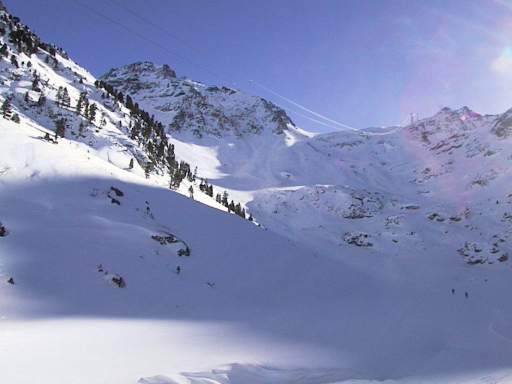 We had rented avalanche beepers, small radio transmitters that are weared under the ski suit. If one gets caught in an avalanche and buried under snow, other people in the group can turn their devices into reception mode and locate the victim rather quickly. Certainly a piece of equipment you should have if you plan to ski outside the marked slopes. Of course the normal precautions must also be taken to prevent accidents in the first place - respect the warning signs, avoid dangerous looking places, keep enough distance to each other etc. |