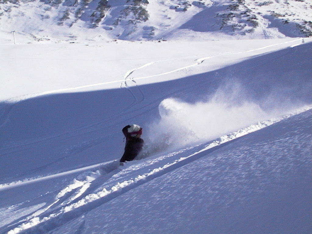 I learned quickly to enjoy the powder too, it wasn't too difficult after all. And having tried both skis and a snowboard I would recommend the latter. Blue sky, sunshine, not too many people - wonderful! |