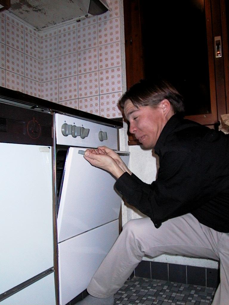 No, this is not Tuomas's reaction to the smell - the oven door proved to be a bit too difficult to open for an average engineering student. Well, after some tweaking we got it work and could have our pancake. Yum! |
