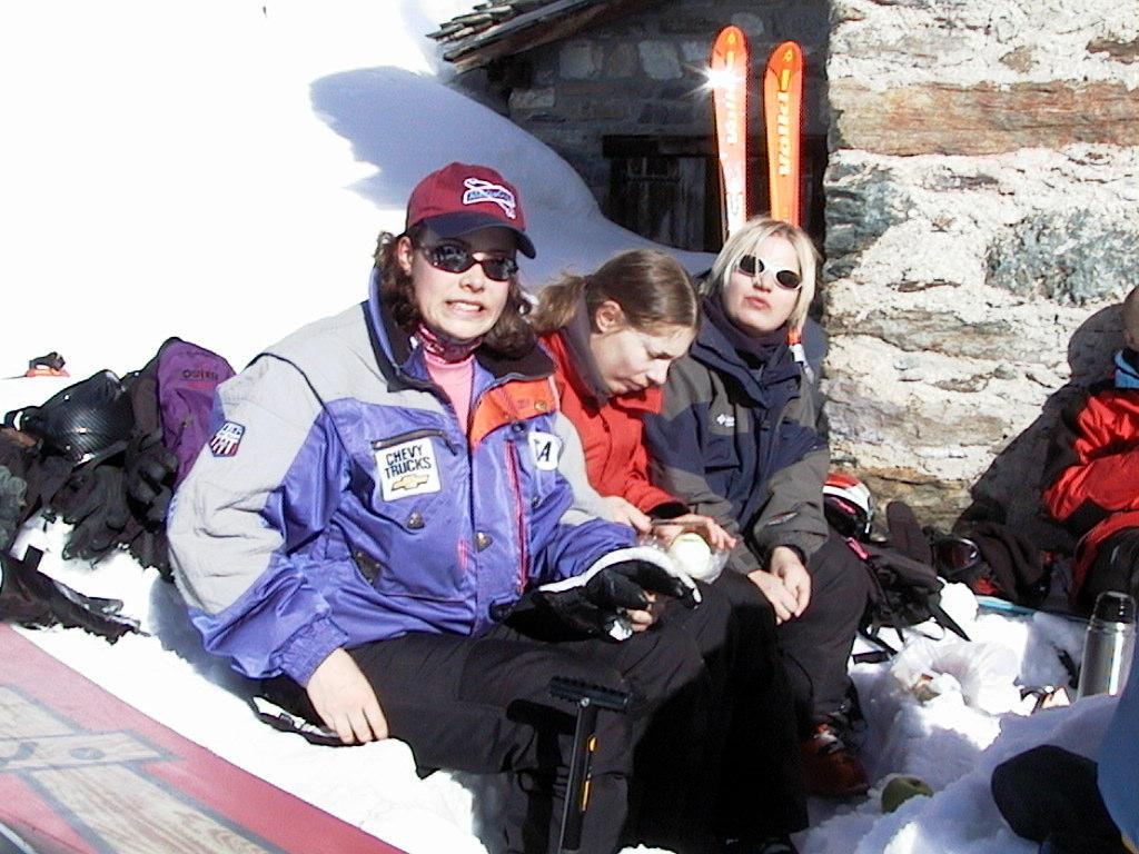 On Saturday we had a picnic together by one of the slopes. Baguettes, cheese, wine, whatever you wanted to bring. |