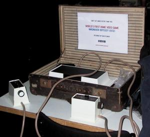 | Maailman ensimmäinen kotivideopeli Magnavox Odyssey vuodelta 1972. |
